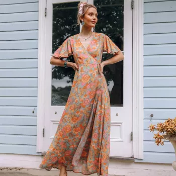 Boho Floral Wrap Maxi Dress