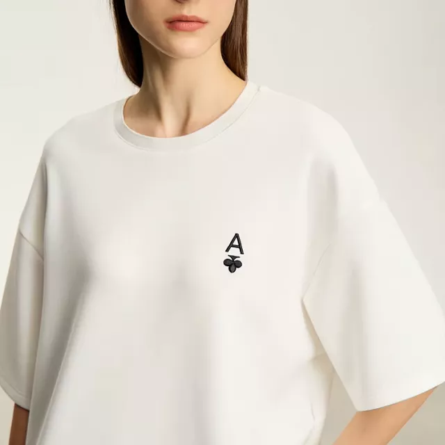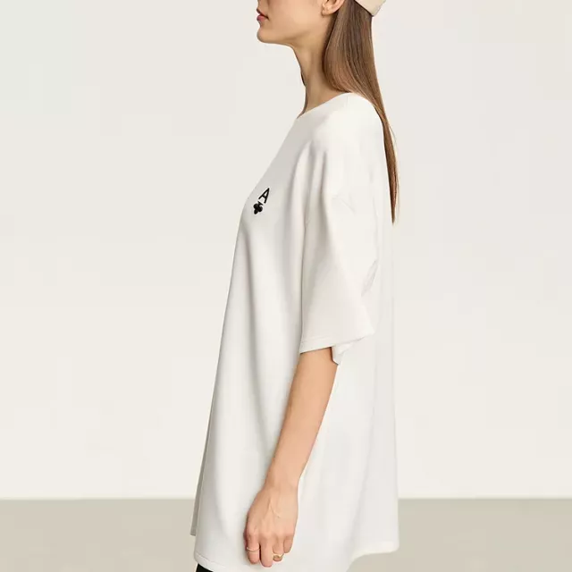 The charm of this top lies in its ability to offer a minimalist, relaxed style without sacrificing elegance. The small embroidered details give it a subtle yet sophisticated touch, while the medium-long cut and drop shoulder sleeves create a flattering and comfortable fit. The fabric blend of polyester, cotton, and spandex ensures the perfect balance of breathability, stretch, and durability. This makes it not only a stylish option but also an incredibly practical one for everyday wear.