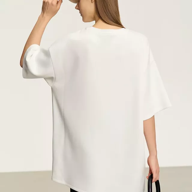 This versatile t-shirt is ideal for the spring and summer seasons, offering just the right amount of coverage and breathability. Whether you’re dressing for a day at the office, a coffee date, or a weekend outing, this top fits perfectly into your wardrobe. The minimalist design makes it easy to pair with any bottom – from skirts to jeans, or even shorts. For a more professional look, you can layer it under a blazer, or keep it casual with your favorite sneakers. Its casual chic style is perfect for daily wear, allowing you to move effortlessly from day to night.