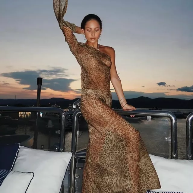 Make a bold statement with the One Shoulder Leopard Print Backless Maxi Dress – a show-stopping piece designed to bring out your wild, confident side. Whether you’re walking along the beach at sunset, dancing the night away at a club, or attending a stylish vacation dinner, this dress is your ultimate go-to for making a lasting impression. The diagonal neckline and open back create a sexy silhouette, while the floor-length design adds elegance and allure.