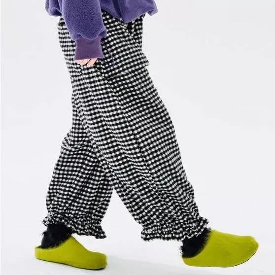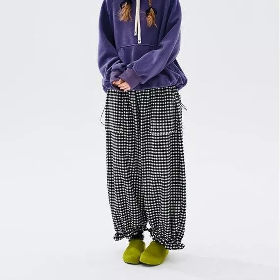 Our Original Plaid Woolen Lace Wide Leg Pants are a versatile addition to your wardrobe. Whether you’re heading to the office, meeting friends for brunch, or enjoying a casual day out, these pants effortlessly transition from day to night. The elastic waist ensures comfort during long hours, making them your go-to choice for any occasion.