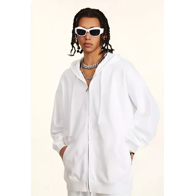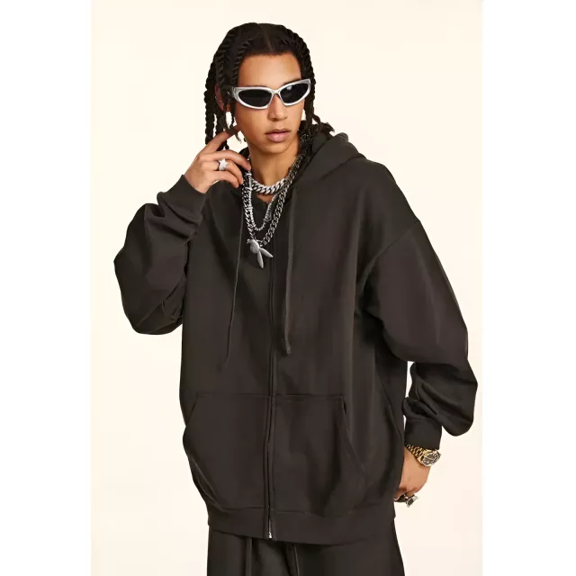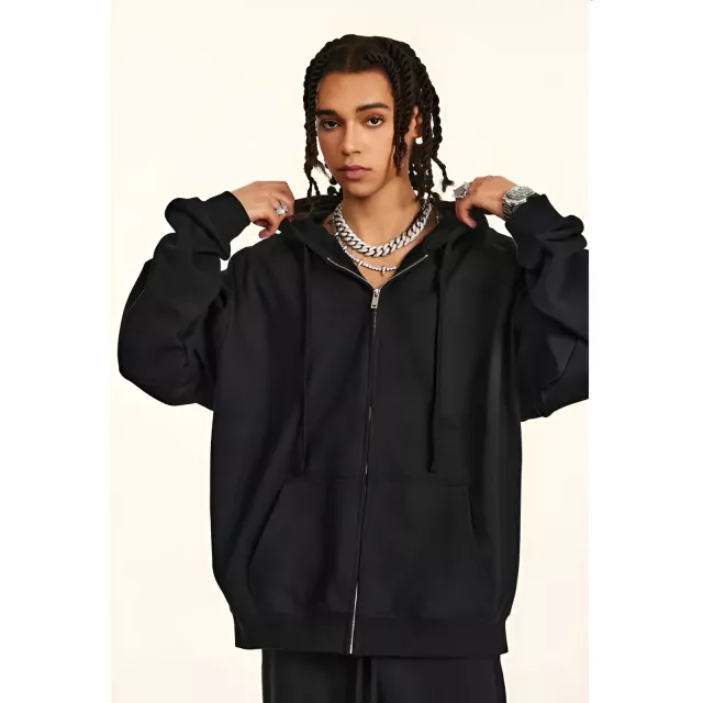 This hoodie is the perfect combination of warmth, comfort, and fashion. The 440g fleece lining provides a snug and cozy feel, while the cotton-polyester blend ensures the material is soft and breathable. Whether you’re out and about or curled up at home, the oversized fit gives you plenty of room to move, making it the ultimate piece for layering. The zip-up design makes it easy to adjust for the perfect fit, and the full-length sleeves offer extra coverage when the temperatures drop.