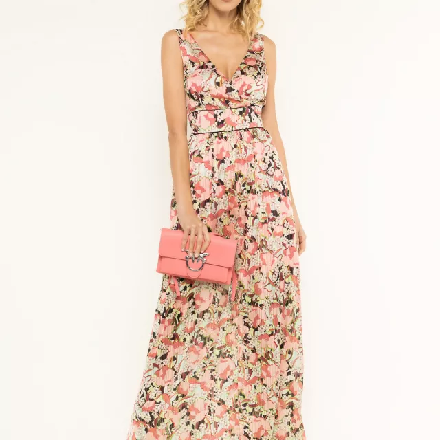 Bring color, charm, and confidence to your wardrobe with the Pinko Women’s Floral Sleeveless V-Neck Dress. This standout piece is designed to turn heads and capture hearts, making it a must-have for your spring and summer style rotation. With its lively multicolor floral print, breezy silhouette, and ultra-feminine V-neckline, it’s the perfect companion for sunny days, outdoor parties, garden weddings, and everything in between.