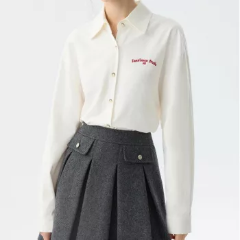 Winter Khaki Long Sleeve Blouse with Embroidery Design