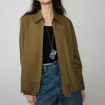 Elegant Autumn Floral Embroidered Irregular Blouse