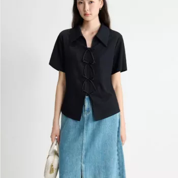 Elegant Chiffon Bow Top – Casual and Chic Black Blouse