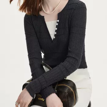 Women’s Slim Fit V-Neck Contrast Color Knitted Sweater