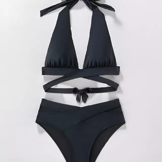This swimsuit was made for moments in the sun. Whether you’re sipping cocktails at a beach resort, soaking in the hot springs, or snapping vacation selfies on a cruise deck, the Sexy Black Halter Cross Bikini brings effortless glamor to every setting. It’s equally perfect for summer getaways, romantic get-togethers, and fashion-forward poolside lounging.