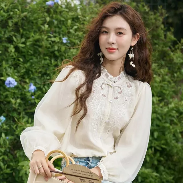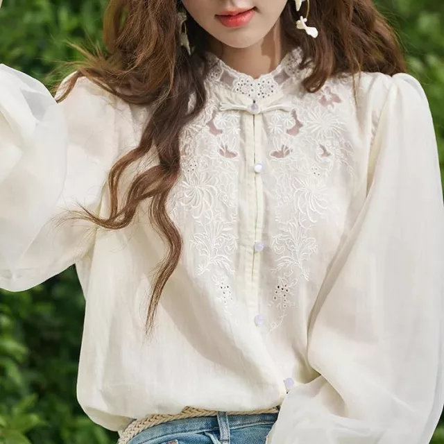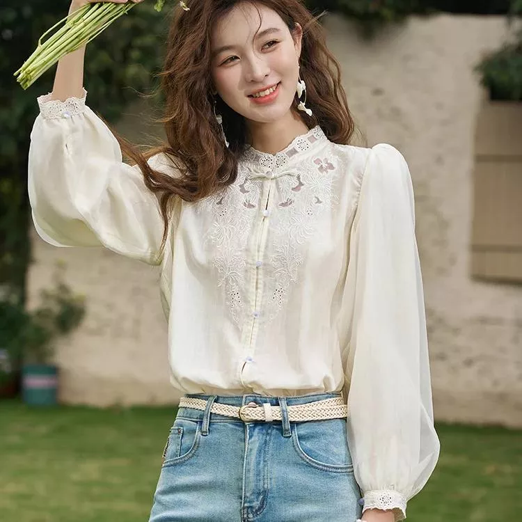 Introducing our Spring Hollow Embroidered Mesh Blouse, a perfect blend of traditional Chinese style and modern femininity. Designed to enrich your wardrobe, this blouse features full bubble sleeves and delicate embroidery that effortlessly balances elegance with comfort. Its loose fit and broadcloth fabric provide a breathable experience, making it ideal for the spring and summer seasons.
