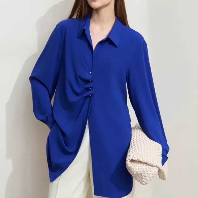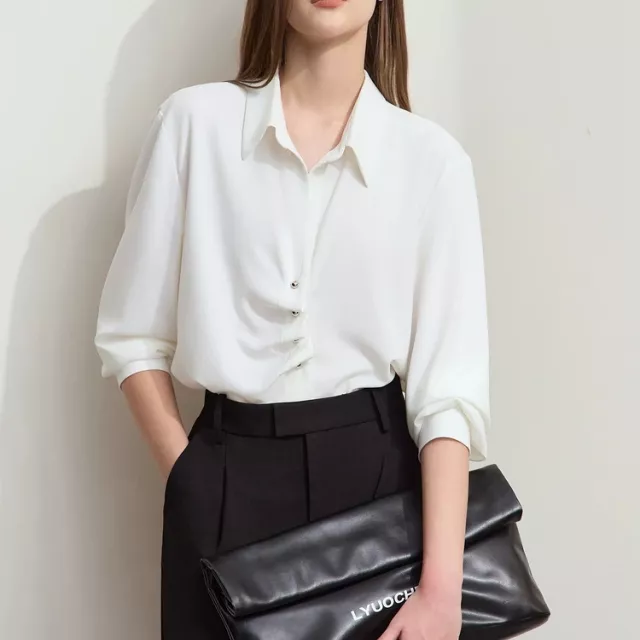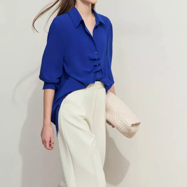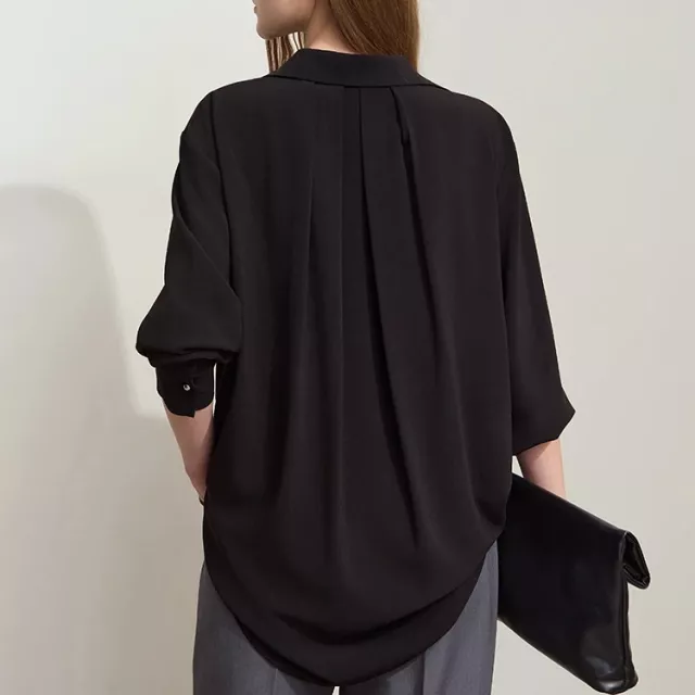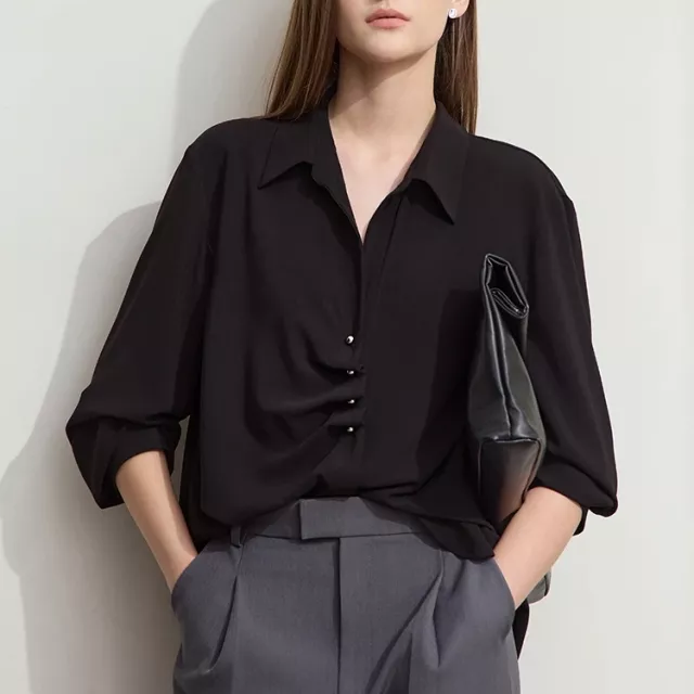The beauty of this blouse lies in its simplicity and versatility. The minimalist design makes it a timeless piece, easy to style with virtually anything in your closet. Its relaxed fit ensures comfort throughout the day, while the lightweight chiffon fabric adds an air of refinement. The subtle button decoration enhances its sleek look, offering a sophisticated touch without overwhelming the design. Ideal for middle-aged women who appreciate understated elegance, this blouse is designed to effortlessly blend into both your work and weekend wardrobe.