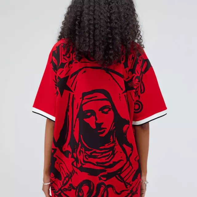 Designed with both style and comfort in mind, this oversized polo shirt is your go-to piece for effortless street style. The breathable cotton-polyester blend ensures you’ll stay cool and comfortable, while the eye-catching Virgin Mary embroidery adds an artistic flair. It’s not just about looking good; it’s about feeling good too. This shirt offers a perfect fit that flatters any body type and works seamlessly in both casual and streetwear looks.