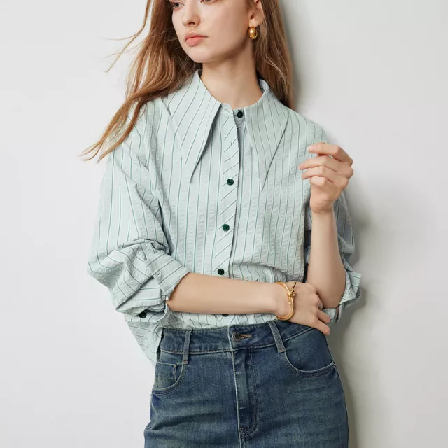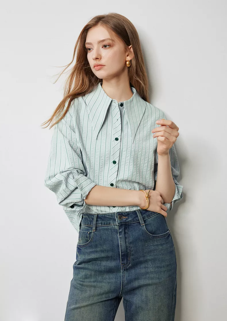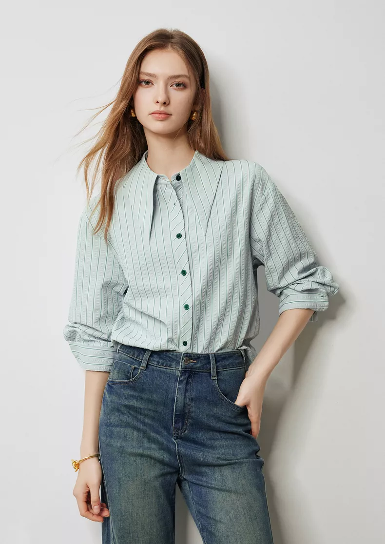 This blouse is your go-to choice for office days, casual meet-ups, or even dinner dates. The sophisticated stripes and elegant collar make it easy to dress up or down. Pair it with a blazer for a sharp office look or wear it solo with jeans and ankle boots for a more relaxed vibe. Its versatility ensures it complements any wardrobe effortlessly.