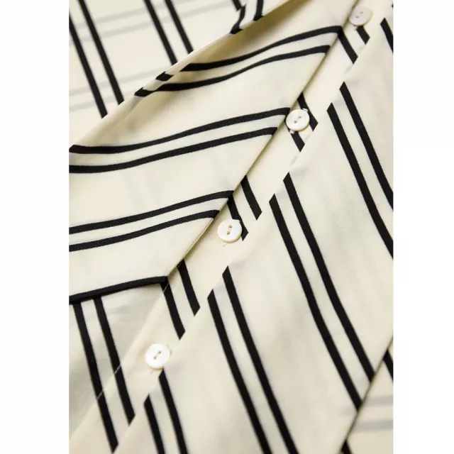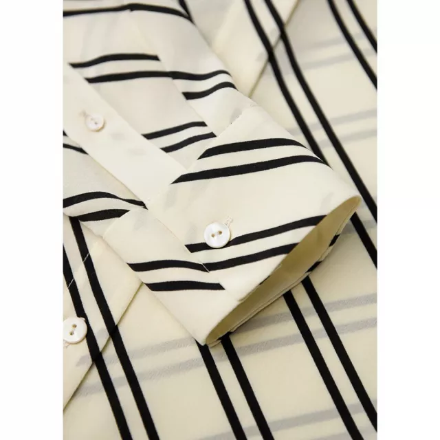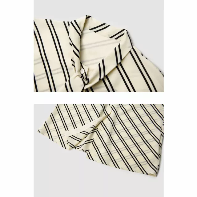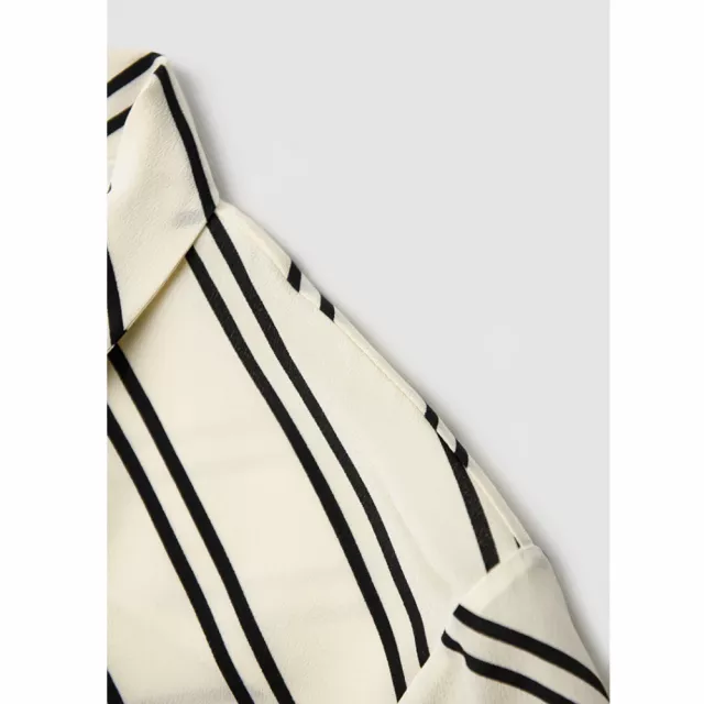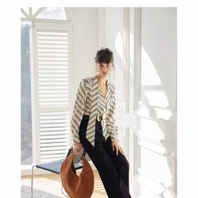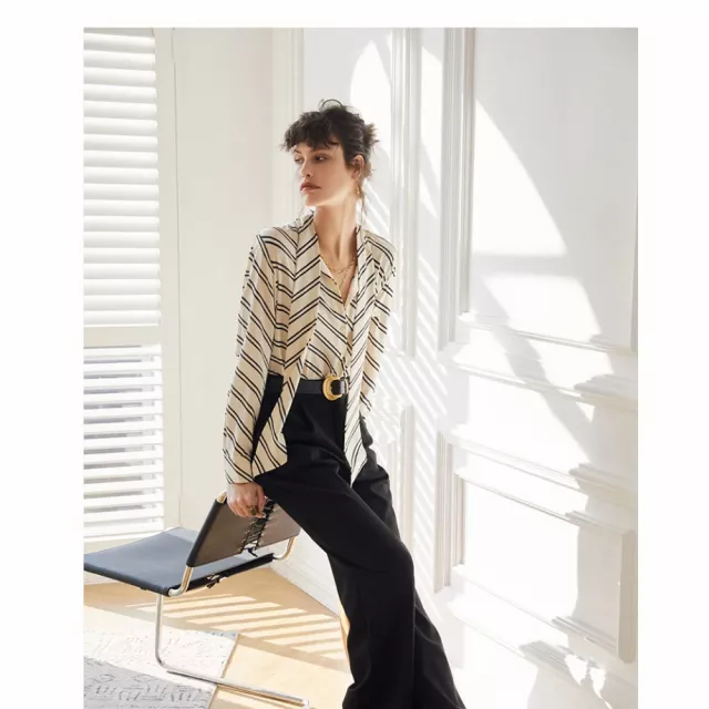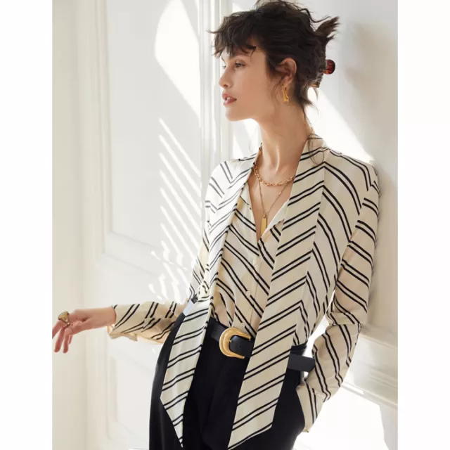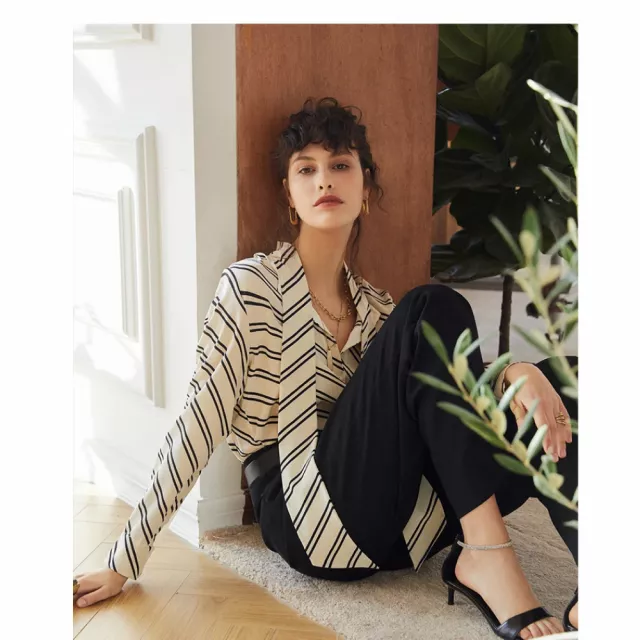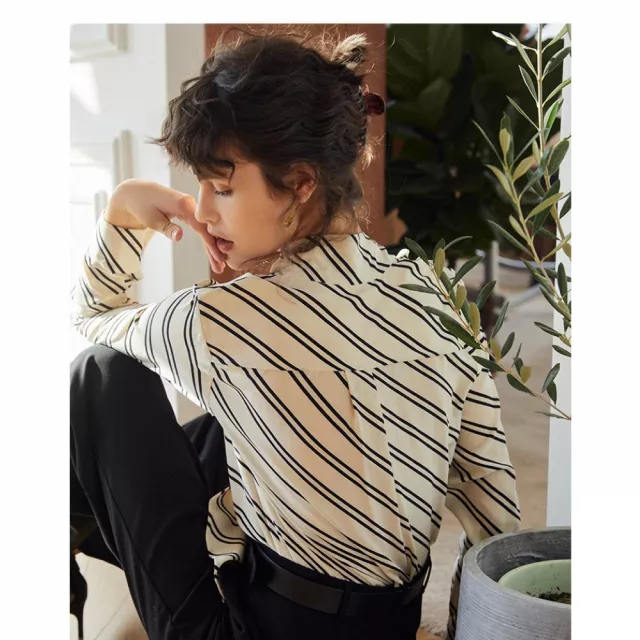 What sets our blouse apart is its commitment to quality and style. The 100% Mulberry silk fabric not only offers a luxurious feel but also ensures longevity and ease of care. The unique bow collar and striped design reflect a blend of classic and modern trends, making it a timeless piece in your wardrobe.