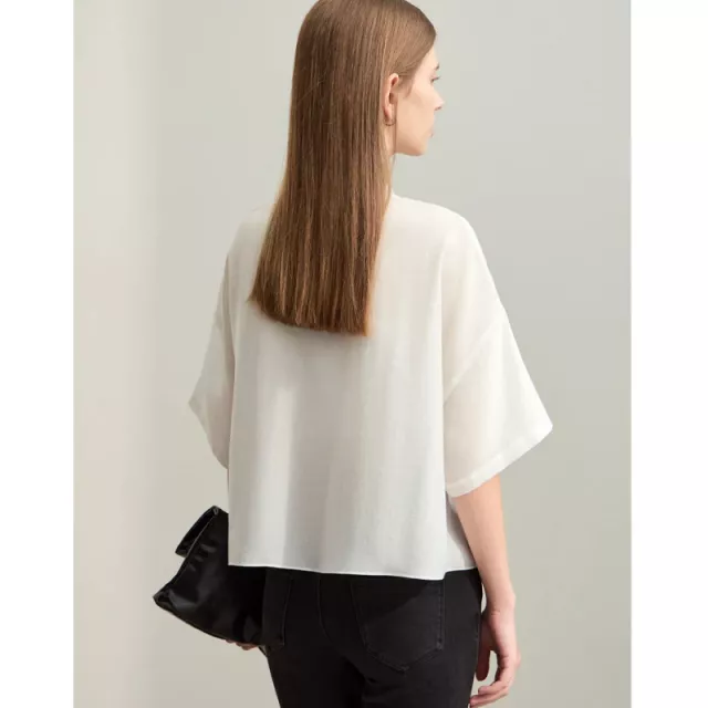 Featuring a delicate butterfly pattern and crafted from a premium blend of polyester and lyocell, this blouse exudes a gentle, refined look with its smooth and breathable fabric. The unique stand-up collar and drop-shoulder design enhance the blouse’s distinctiveness, making it a standout piece in your collection. With its short sleeves and regular fit, it promises both comfort and a flattering silhouette.