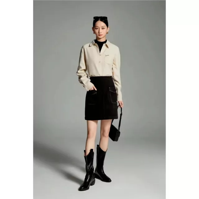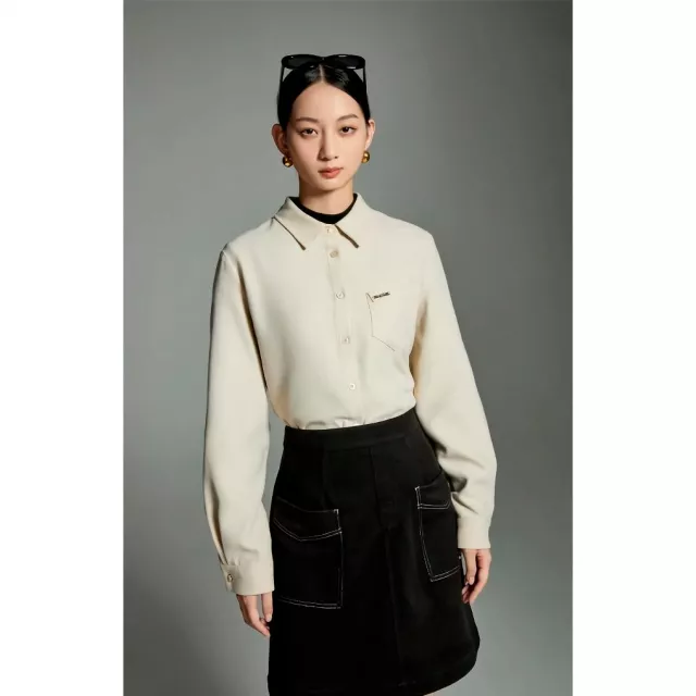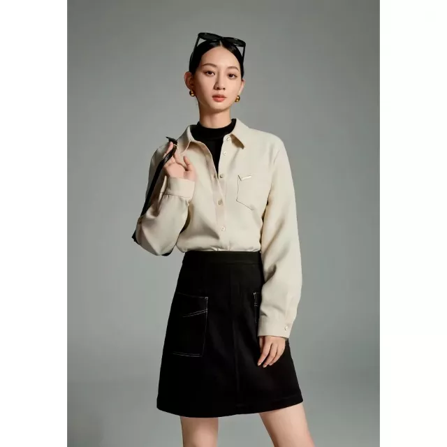 Thickened Long Sleeve Polo Neck Blouse with Pocket