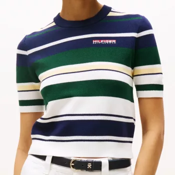 TOMMY HILFIGER Women’s Cropped Nautical Stripe Jumper – Short Sleeve