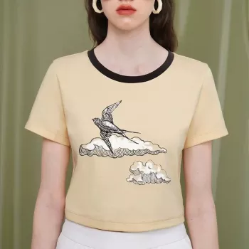 Flying Swallow Clouds Print Cotton Crop Top for Women