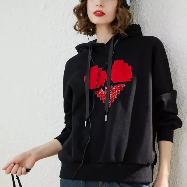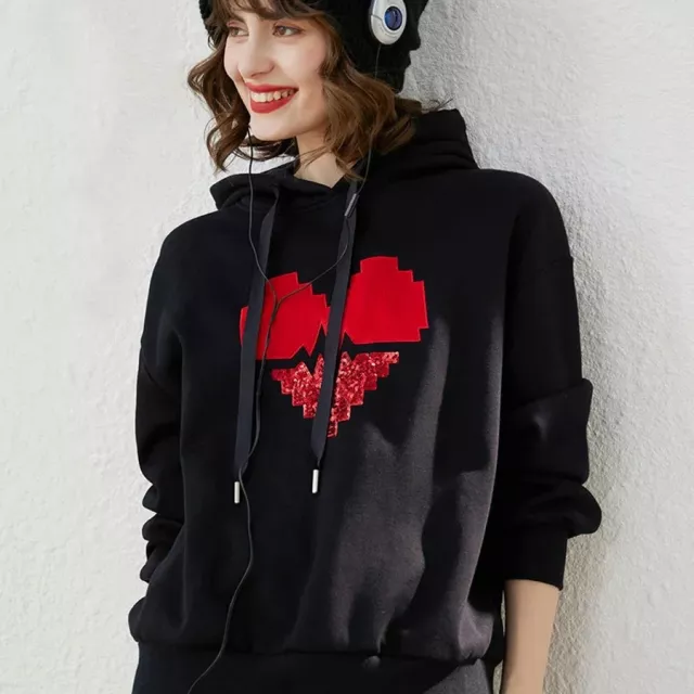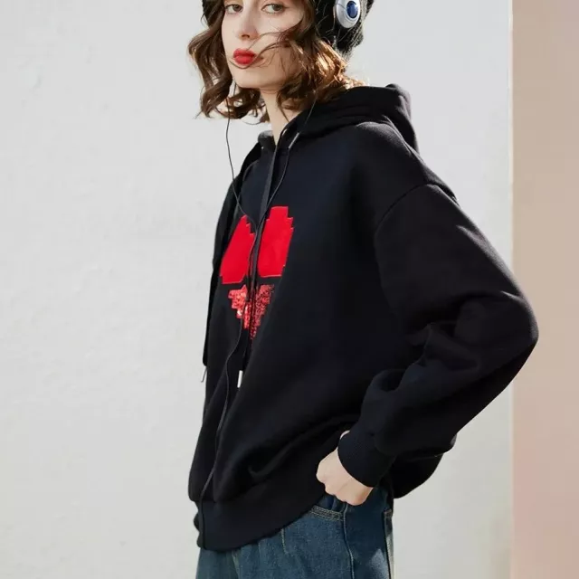 This hoodie is the perfect mix of style and practicality. It’s not just a sweatshirt – it’s a statement piece that adds a pop of color and a touch of flair to your everyday wardrobe. Whether you’re out on a brisk winter morning or lounging around, this cozy hoodie offers the warmth and softness you need, while the bold red heart embroidery makes sure you stand out in a crowd.