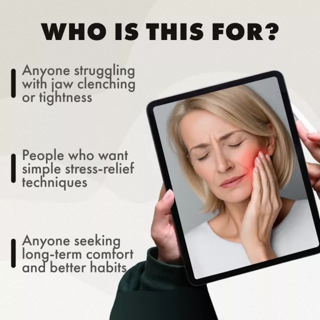 Do you often catch yourself clenching your jaw without realizing it? Stress can silently build tension in your jaw, leaving you with discomfort, headaches, and even disrupted sleep. Unclench: A Stress-Free Guide to Releasing Jaw Tension is your practical, step-by-step digital guide designed to help you understand, relieve, and prevent jaw tension from stress. Packed with easy-to-follow exercises, self-care techniques, and long-term strategies, this downloadable guide empowers you to take control of your jaw health and reclaim peace of mind.