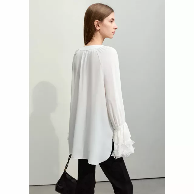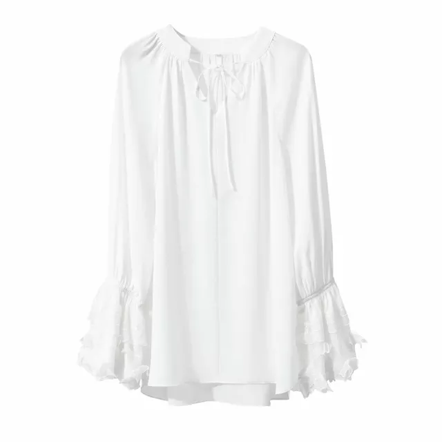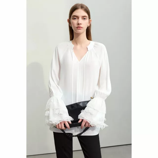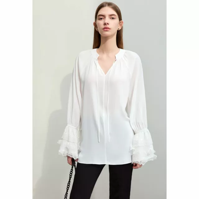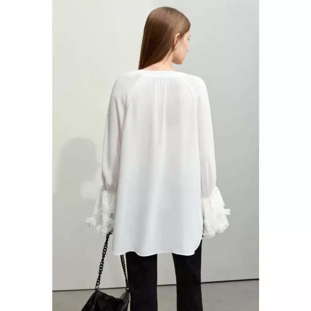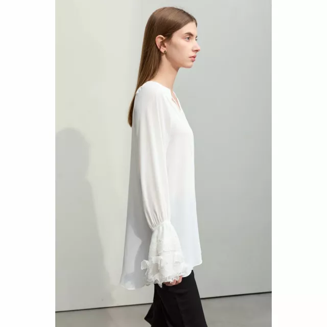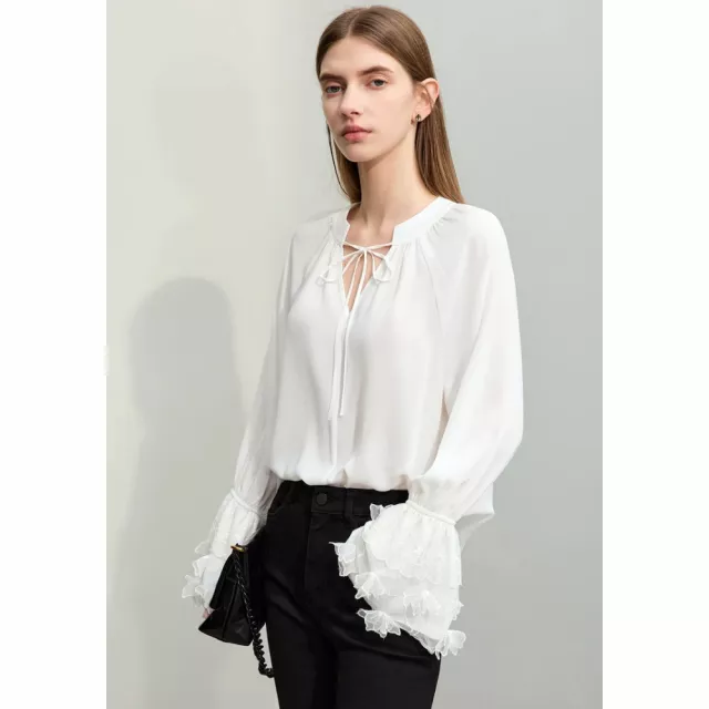 Embrace the new season with our latest arrival, the V-Neck Lace Chiffon Blouse, perfect for adding a touch of fairy style elegance to your wardrobe. Crafted from premium chiffon, this mid-length blouse is designed to flatter with its loose fit and ethereal flare sleeves. Whether you’re updating your office look or seeking a chic, casual ensemble, this blouse is your go-to for spring 2024.