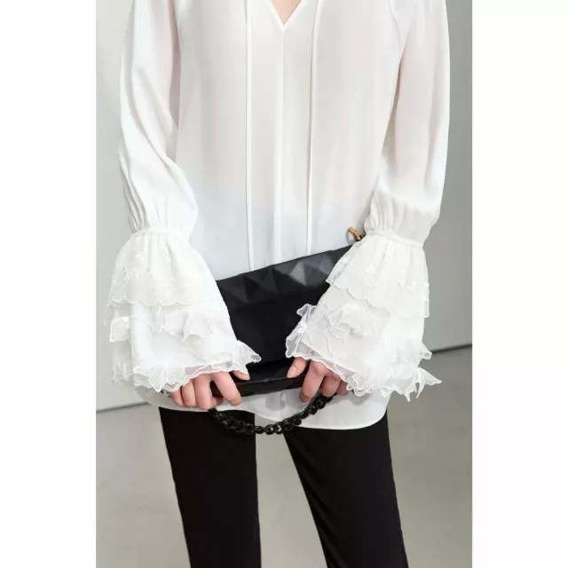 Aside from its beautiful design and quality materials, what sets our blouse apart is its commitment to versatility and comfort. The non-stretch chiffon ensures a flattering fit for all body types, while the lace details provide a timeless charm. With no closure, it slips on easily, offering a seamless blend of convenience and style.