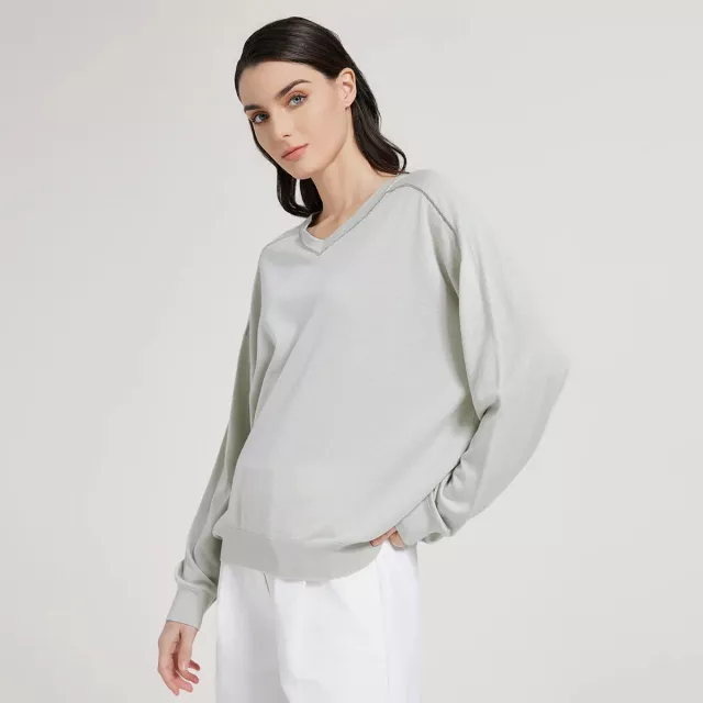 This high-quality knitted sweater is designed to make you feel as good as you look. The luxurious silk and wool blend is not only incredibly soft to the touch but also breathable, ensuring you stay comfortable all day long. The lightweight fabric makes it ideal for layering during spring, keeping you cool while still providing enough warmth for those cooler evenings. With its loose, relaxed fit and batwing sleeves, it’s the perfect piece to wear for both casual and slightly dressier occasions.