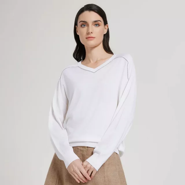 Whether you’re dressing for a casual brunch with friends, a day out shopping, or simply lounging in style at home, this sweater is a versatile addition to any wardrobe. Pair it with jeans, skirts, or even leggings for a chic and effortless look. The beaded details and luxurious feel make it an excellent choice for both day and evening wear, while the easy-care fabric ensures you can enjoy it season after season.