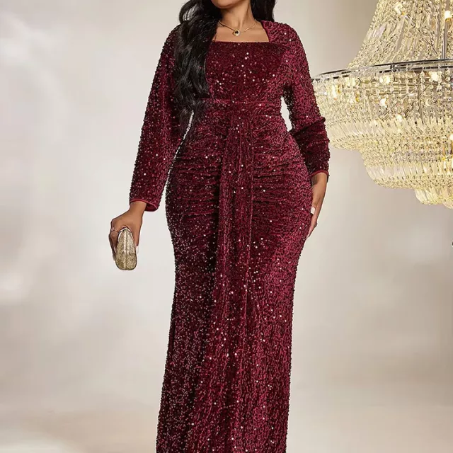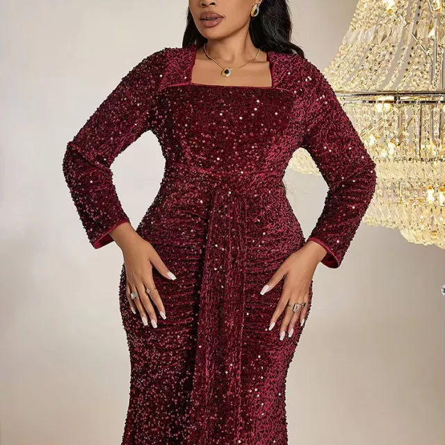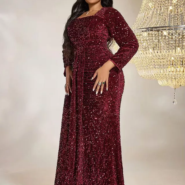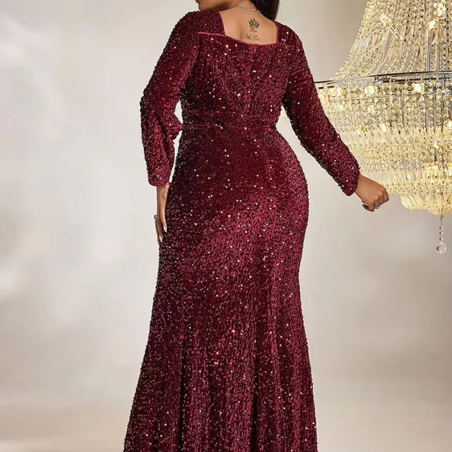 Step into the spotlight with this stunning plus size red sequin evening dress, designed to make you feel glamorous and confident. Perfect for parties, weddings, proms, or any formal event, this dress is a showstopper. With its flattering square neckline, long sleeves, and exquisite sequin details, this dress combines elegance with a touch of sparkle, making it the ideal choice for those looking to make a lasting impression. The luxurious fabric hugs your curves in all the right places, ensuring both comfort and style all night long.