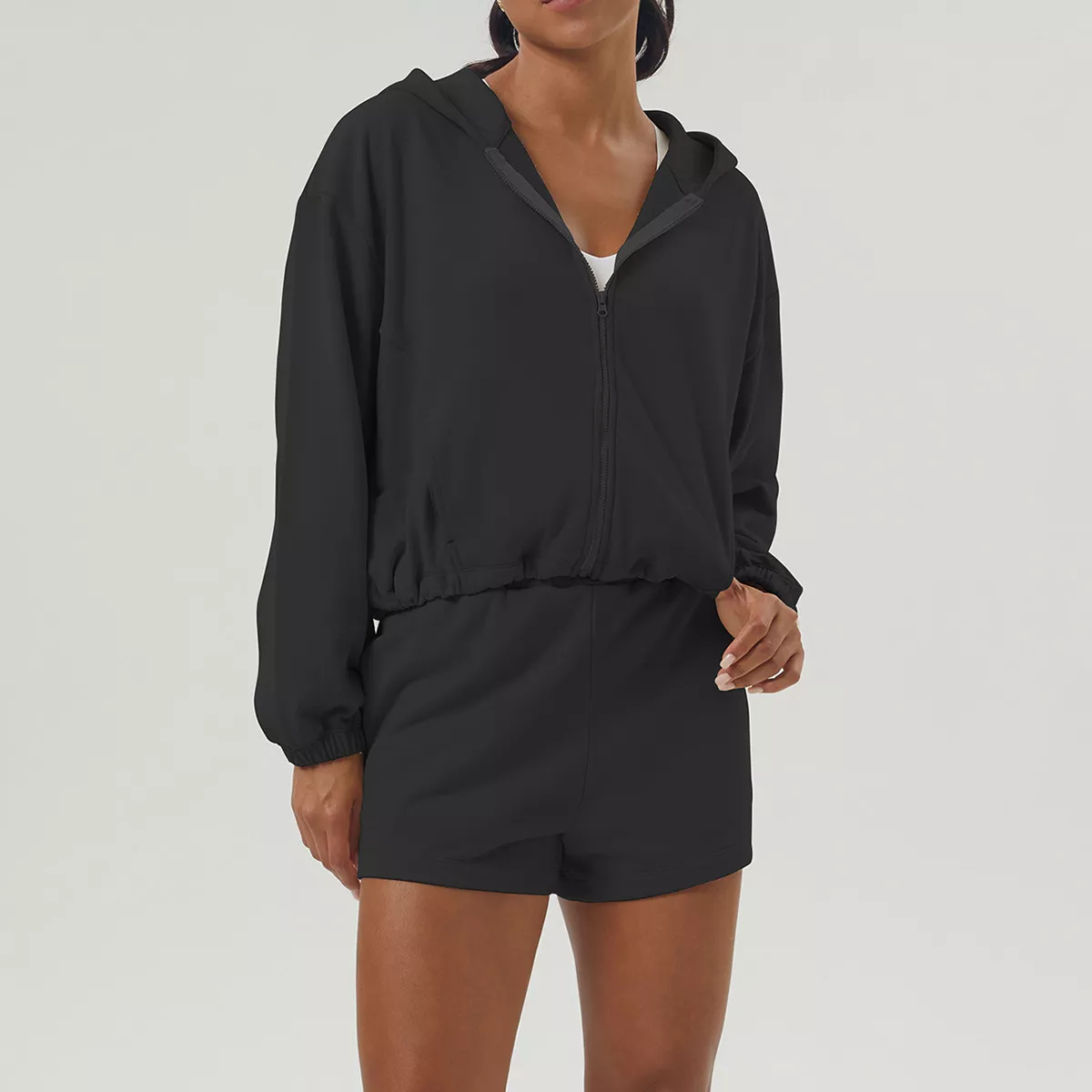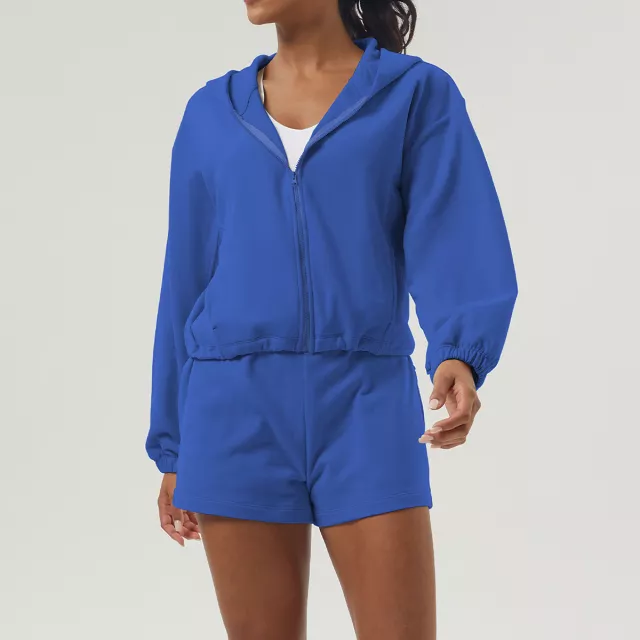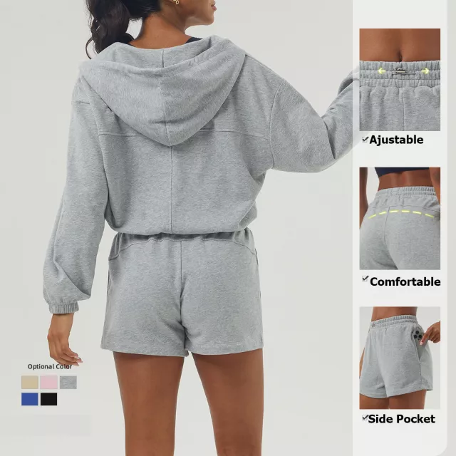 This set isn’t just about looks – it’s made to move with you. The breathable fabric ensures you stay fresh even during high-energy routines. The hoodie provides warmth and coverage on chillier days, while the shorts let your legs breathe. Utility pockets add function, keeping your essentials within reach. And thanks to its wrinkle-resistant finish, you can toss it in your gym bag and throw it on without a second thought.