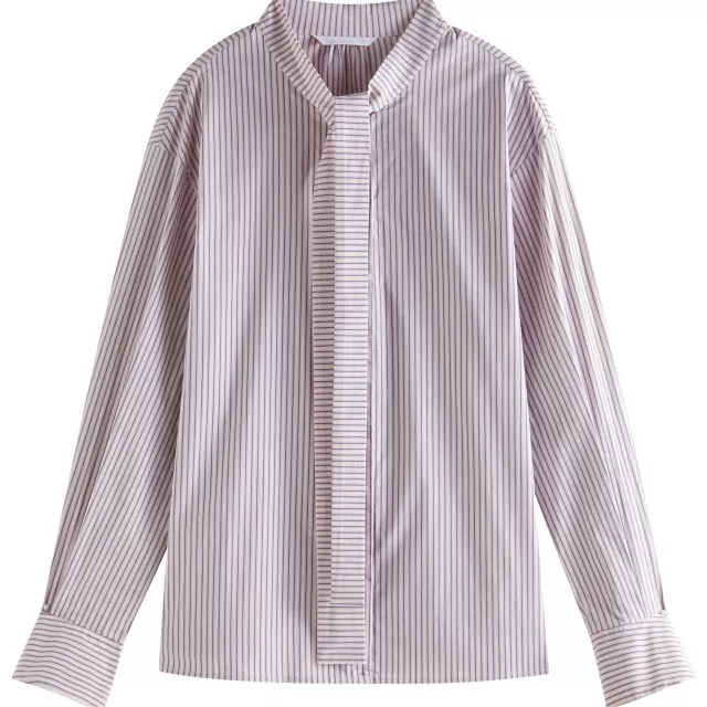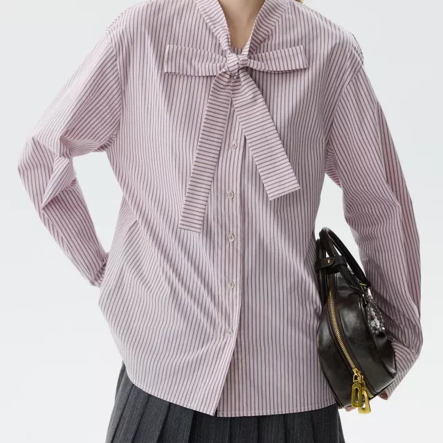 This blouse isn’t just about looks – it’s about feeling great too. The carefully selected fabric composition provides a comfortable fit without sacrificing style. Whether worn tucked into a pencil skirt for a polished office look or paired with jeans for a more laid-back style, this blouse is versatile enough for many occasions. The bow collar and striped pattern make it a standout piece that adds flair to your outfit while remaining sophisticated.