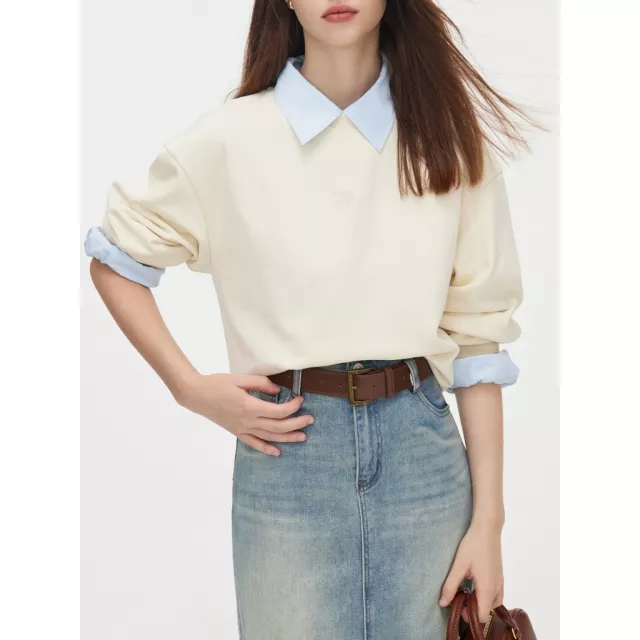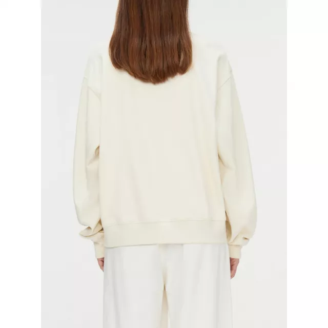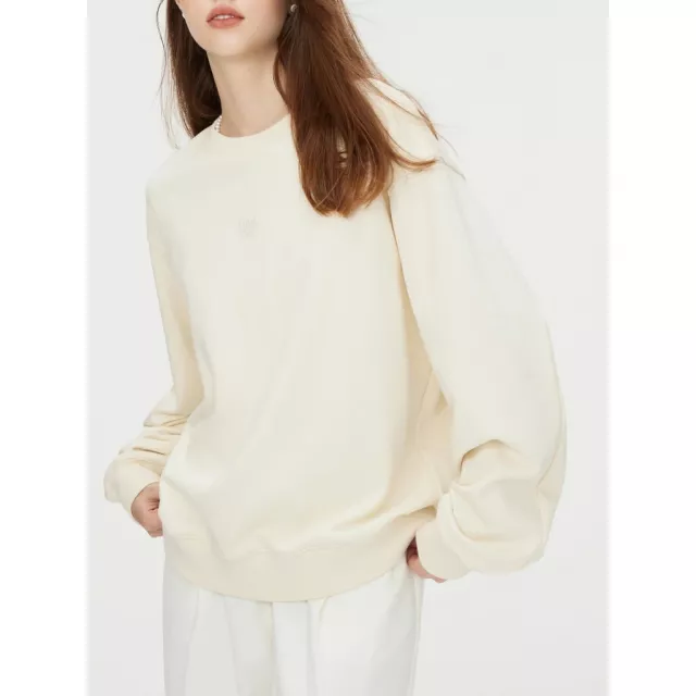 What sets this pullover apart is its combination of simplicity and elegance. The small embroidery design adds a unique touch to the solid beige color, making it stand out without being too flashy. The 100% cotton material ensures that it’s not only stylish but also incredibly comfortable. The drop sleeve design and loose fit provide a relaxed silhouette that’s perfect for everyday wear.