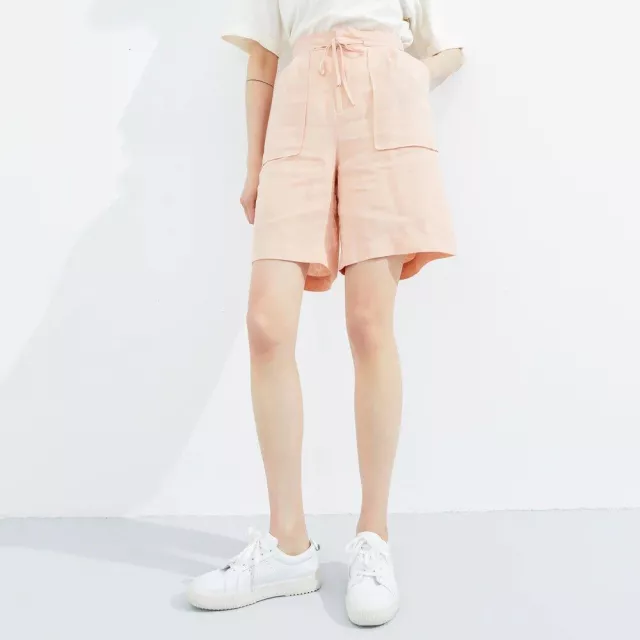 Made from a premium blend of 56% Linen and 44% Viscose Fiber, these shorts offer unmatched breathability and softness, ideal for warm weather. The woven fabric ensures durability and a luxurious feel, making them a long-lasting addition to your summer collection. The lace-up detail adds a playful and stylish twist to the classic design, making them versatile for both casual outings and office wear.