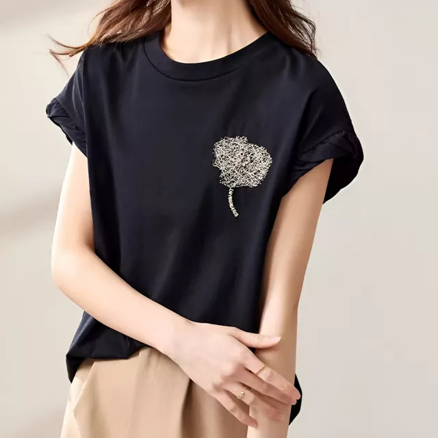 This t-shirt shines in the summer months when you’re seeking cool, breathable wear without compromising on style. Whether worn on its own or layered under a jacket or cardigan, it provides a clean, polished base for countless outfits. It’s ideal for casual brunches, errands, beach strolls, or simply lounging in comfort. With its easy-care fabric and everyday wearability, this piece will quickly become a favorite in your rotation.