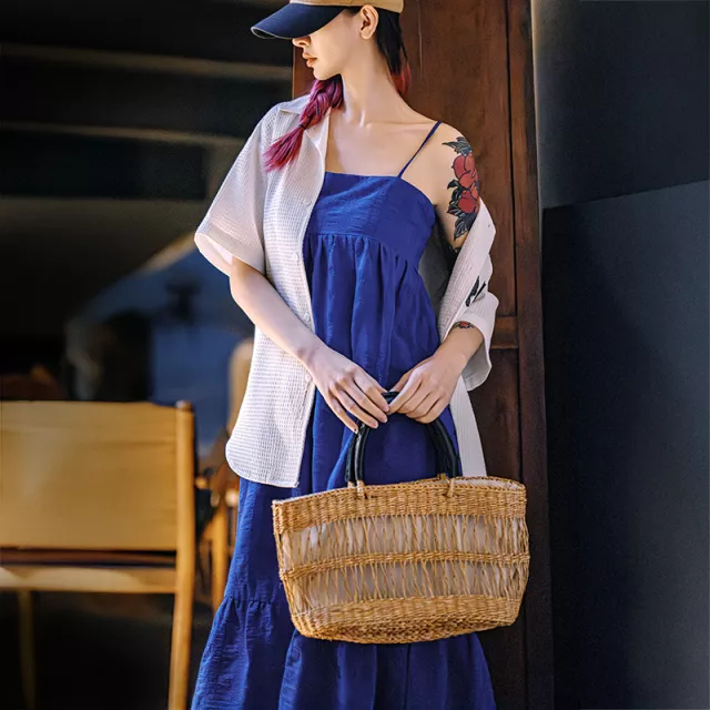 The Seersucker Slip Dress features a beautiful patchwork design that elevates its casual yet chic vibe. The crossed strap design adds an extra element of flair, while the hollow-out details give it a unique touch. The dress is made from a soft cotton blend fabric, providing a slight stretch for added comfort and freedom of movement. Whether you’re lounging at the beach, strolling through the city, or attending a casual dinner, this dress will keep you looking fashionable all season long.