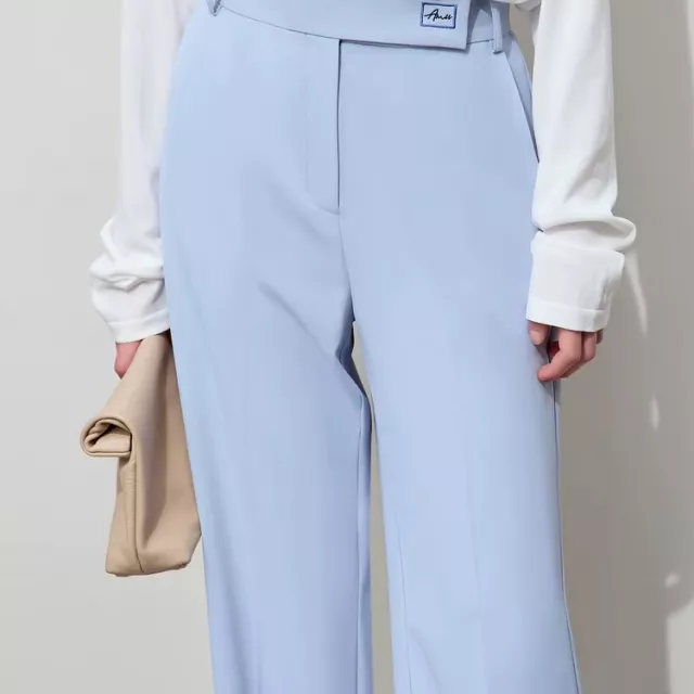 The solid-color base is elevated with delicate contrast embroidery, adding a refined yet subtle detail that enhances the overall aesthetic. The flat front and zipper fly closure provide a seamless and professional look, making these trousers ideal for workwear or stylish everyday ensembles.