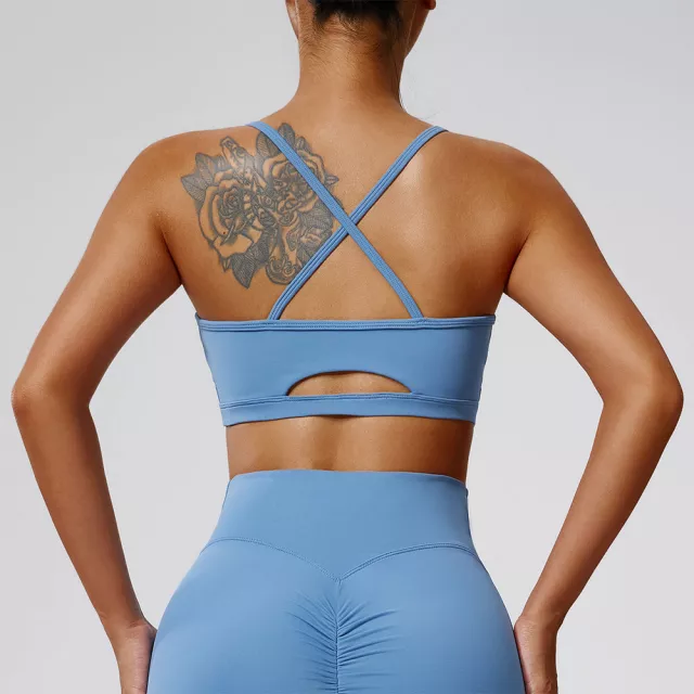 Crafted from a high-quality blend of 78% nylon and 22% spandex, the fabric is soft, stretchy, and feels smooth against your skin. The moisture-wicking material keeps sweat at bay while the breathable knit ensures you stay cool, even during intense workouts. The cross-strap back adds a sexy touch and allows maximum freedom of movement without compromising on support. With a second-skin fit and no digging or chafing, this sports bra offers unmatched comfort for all-day wear.
