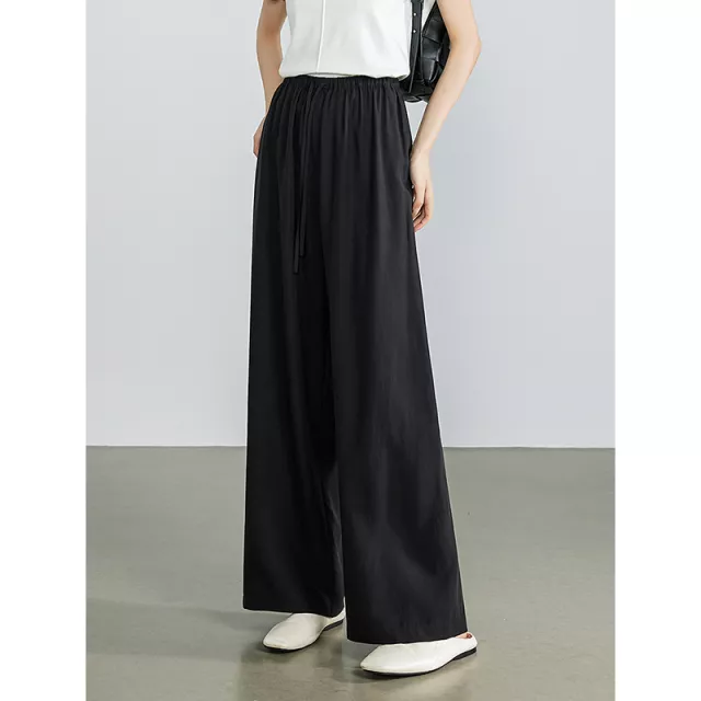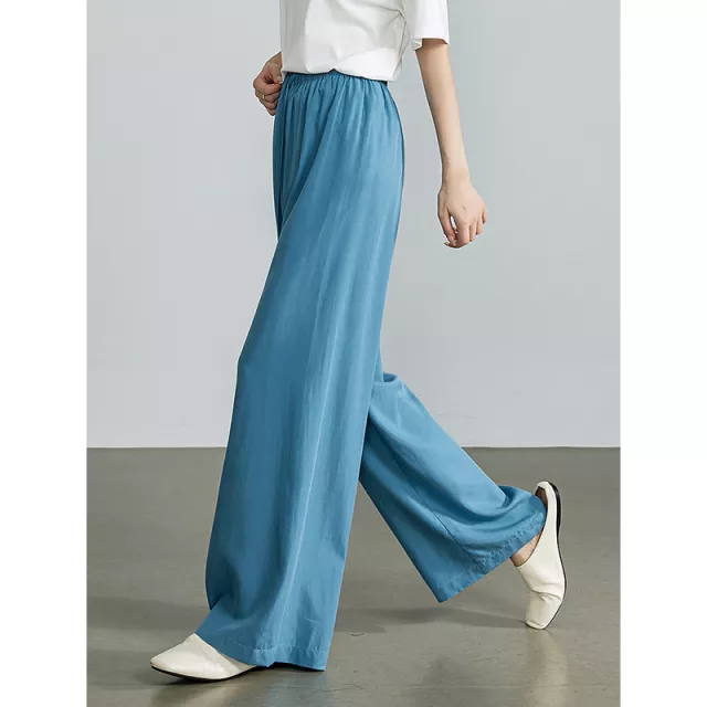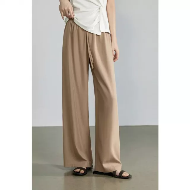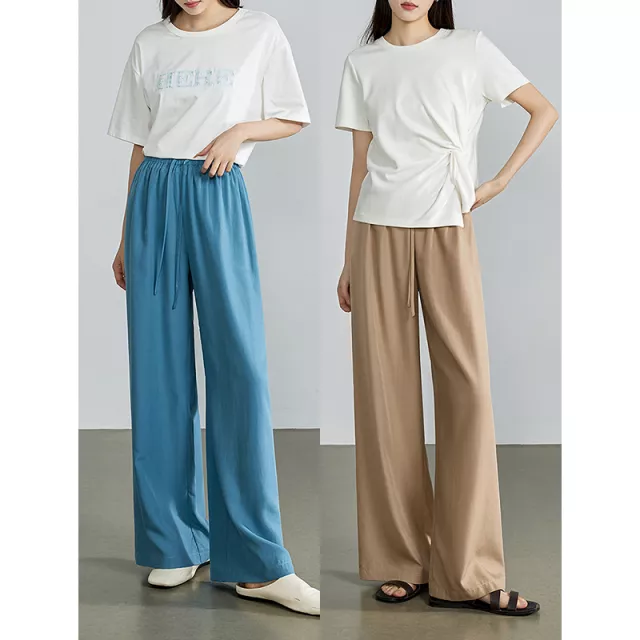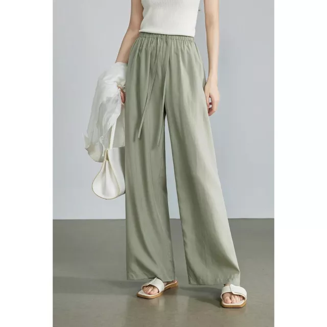Made from high-quality lyocell fabric, these pants provide a soft, breathable, and lightweight feel, making them an excellent choice for warm weather. The wide-leg silhouette offers a flattering drape, giving you a polished look without compromising on comfort. With a pleated front and a mid-rise elastic waistband, these trousers provide a secure yet flexible fit, making them easy to slip on and wear all day long.