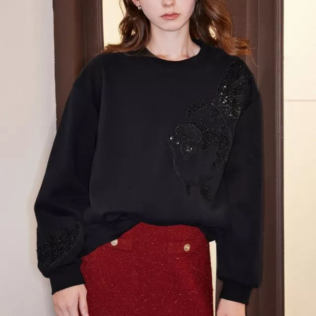 The loose fit and drop sleeves ensure a relaxed yet chic look, while the slightly stretchy cotton fabric provides a snug and cozy feel. Whether you’re heading to the office, meeting friends, or relaxing at home, this sweatshirt is a versatile addition to your collection.