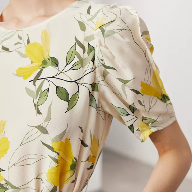 Experience the perfect combination of elegance and comfort. Add this exquisite floral silk midi dress to your collection today and embrace the beauty of effortless style.