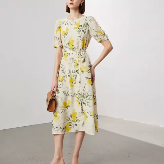 Crafted from 100% real mulberry silk, this dress offers a soft, lightweight feel that keeps you cool and comfortable in warm weather. The breathable natural fiber allows for excellent airflow, making it a must-have for the season. The A-line silhouette gracefully enhances your figure, while the adjustable sash cinches at the waist for a flattering, customizable fit.