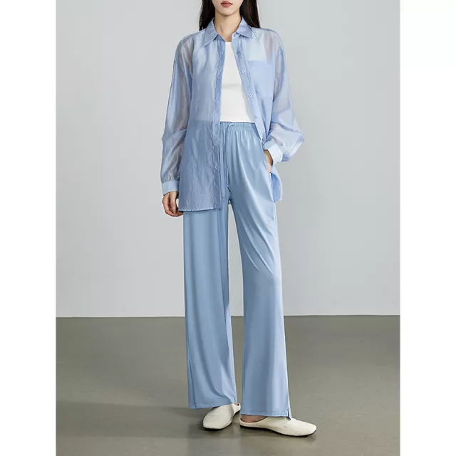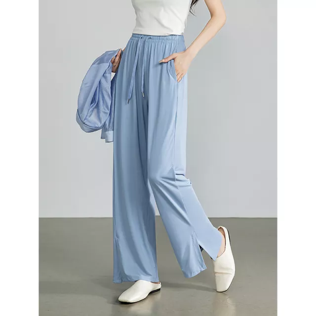 Made from a high-quality polyester blend, these wide-leg pants are ideal for the summer season. The fabric is lightweight, breathable, and provides just the right amount of stretch to keep you comfortable throughout the day. The loose fit ensures freedom of movement, while the mid-rise waist offers a flattering silhouette that pairs perfectly with any top.