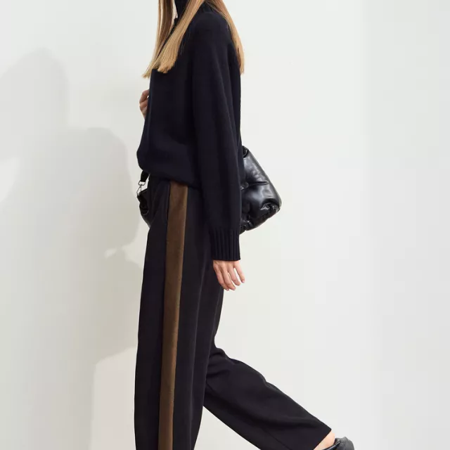 These Women’s Knitted Casual Pants are more than just a wardrobe staple – they are a statement piece. The stylish color-contrasting splicing and embroidery create a modern and sophisticated look, making them perfect for a wide range of occasions. Whether you’re heading to the office or out for a casual day, these trousers offer both style and comfort. The ankle-length design and loose fit provide a flattering look that pairs beautifully with a variety of tops, from a simple blouse to a cozy knit sweater. Plus, the side pockets and elastic waist offer convenience without sacrificing style.