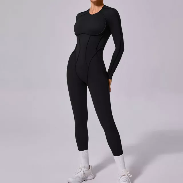 Take your fitness look to the next level with this sleek and sculpting one-piece yoga jumpsuit. Designed for women who want to feel confident, comfortable, and fierce in their workout clothes, this long-sleeve jumpsuit is perfect for everything from yoga sessions to high-intensity training or simply lounging in style. Its body-hugging fit and open-back design blend function and fashion effortlessly, helping you move freely while looking your best.
