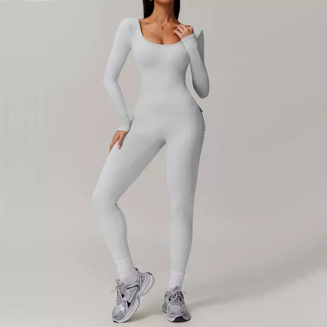 Turn heads and break limits with this sleek and figure-flattering women’s one-piece workout jumpsuit. Designed to move with you, this long-sleeved yoga romper blends sporty function with a touch of chic. Whether you’re powering through a workout, stretching into your favorite yoga poses, or simply running errands in comfort, this all-in-one fitness outfit is your new go-to.