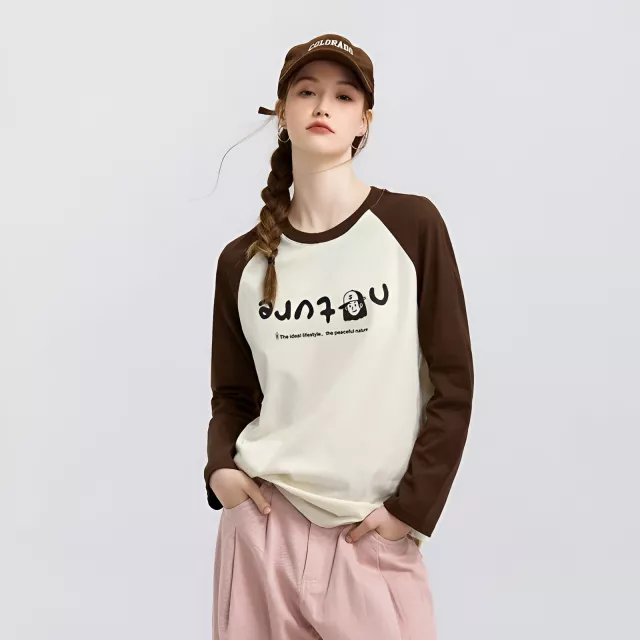 Elevate your casual wardrobe with this trendy and effortless long-sleeve raglan t-shirt. Designed for women who love comfort without compromising on style, this mid-length and long tee features a relaxed fit and modern color-blocked design. Crafted from breathable 100% cotton jersey fabric, it ensures a soft, lightweight feel—perfect for spring days and cool summer evenings.