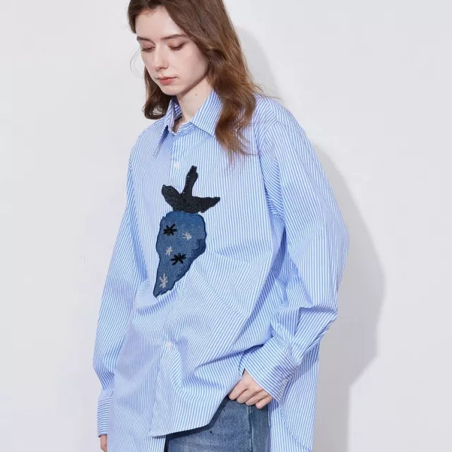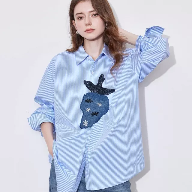 Refresh your wardrobe with this stylish and sophisticated long-sleeve blouse, designed for modern women who love a blend of comfort and elegance. Featuring a charming light blue and white striped pattern with a playful hint of strawberry-inspired hues, this blouse brings a fresh, airy feel to your spring and summer outfits. Whether you’re heading to the office, attending a casual brunch, or enjoying an evening out, this versatile shirt offers the perfect balance of professionalism and relaxed charm.