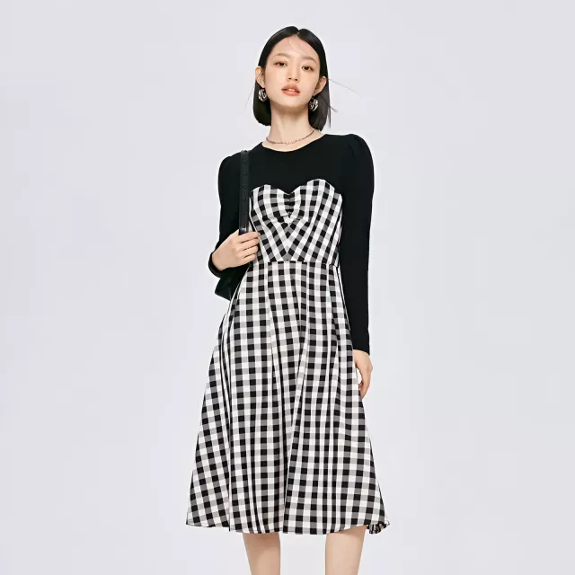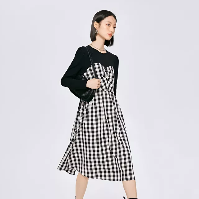 Whether you’re heading to the office, a weekend brunch, or a formal event, this plaid splice midi dress will have you looking effortlessly stylish. Pair it with ankle boots for a chic autumn look or dress it up with heels for an elegant evening ensemble.