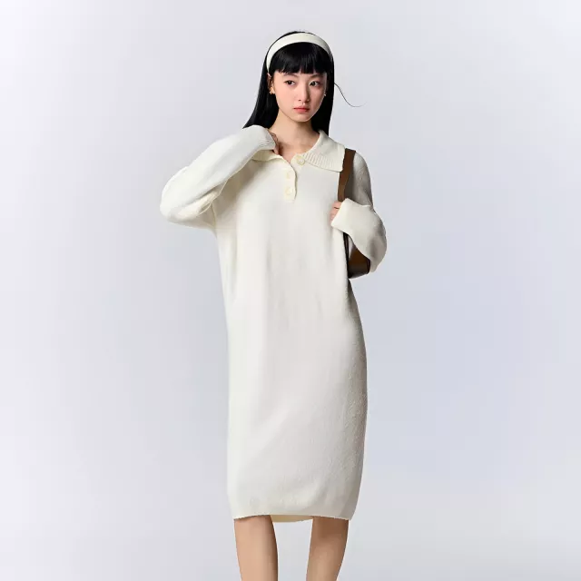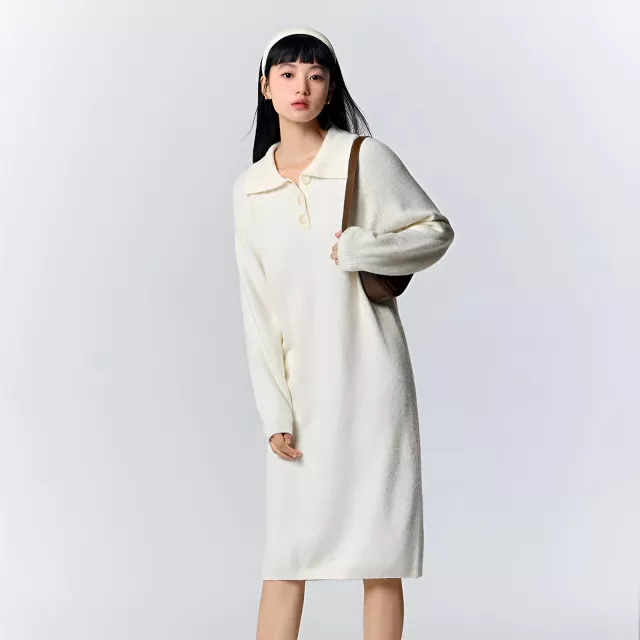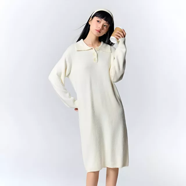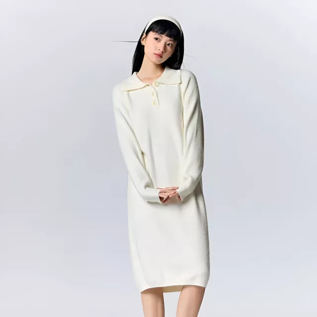 This polo collar knitted dress is the perfect combination of comfort, style, and versatility. With its soft, waxy texture and cozy material, it promises warmth and a relaxed fit for those cooler days. The solid color gives it a timeless look, while the turn-down collar and button details add a touch of sophistication to the design. Whether you’re running errands or enjoying a casual outing, this knee-length dress will make you feel effortlessly stylish and at ease.