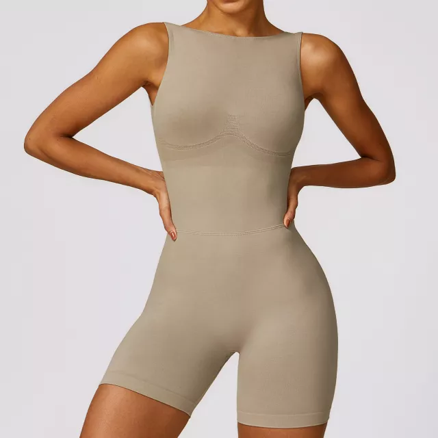 This jumpsuit is more than just sportswear – it’s a confident, functional statement. The seamless knit construction ensures smooth lines and a second-skin fit, while the moisture-wicking and quick-dry features keep you feeling fresh from warm-up to cool-down. With no sleeves to restrict your movement and no pockets to get in your way, this streamlined suit is built for total freedom and focus.