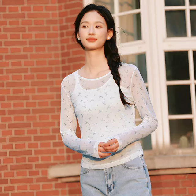 Step into spring with effortless elegance in this stunning sheer tulle long-sleeve top. Designed for the modern woman who loves fashion-forward pieces, this slim-fit tee blends sophistication with comfort. Whether worn alone for a daring sheer look or layered for added versatility, this piece is a must-have for your wardrobe. Its delicate, breathable fabric ensures a flattering fit, while the soft stretch hugs your body in all the right places. Perfect for casual outings, stylish evenings, or an elevated street-style moment, this top is your new go-to fashion essential.